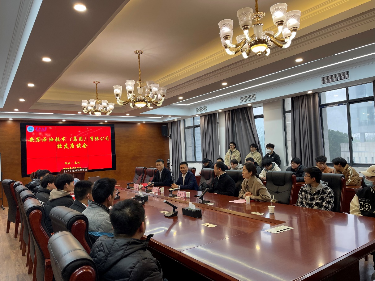 2月16日下午4时30分,安东石油技术(集团)有限公司校友在石油科技大楼C201会议室与部分2023届毕业生进行座谈。