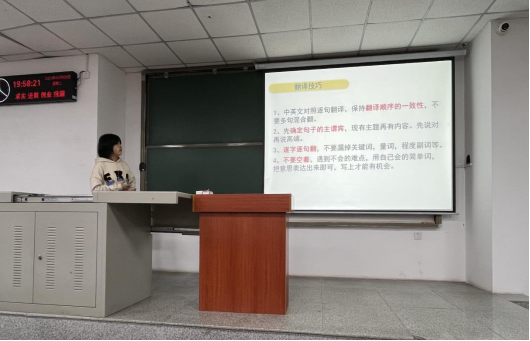 黄诗怡从认识四级、了解题型、明确目标、干货分享到调整心态,层层递进,逐步深入,引导同学们摆正心态,积极准备。