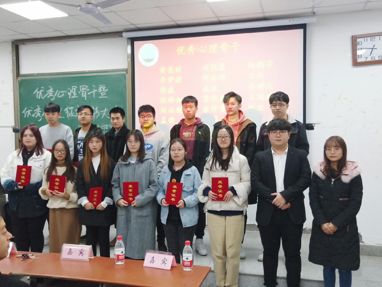 (通讯员丁思怡)11月18日晚18:30,西瓜视频 团委学生会心育部于A-103举办优秀心理骨干表彰暨“心声之路”征文表彰大会。地科院学工办副主任王宁、团委书记廖鹏程、辅导员罗小玉、兼职辅导员归航、院学生会副主席刘昊、刘佳琪、刘远航出席本次大会。
