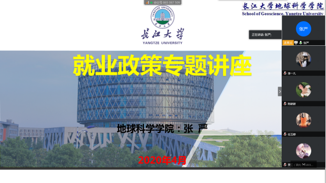 (通讯员 张严)为进一步开展好疫情防控下大学生就业创业工作,积极宣传国家就业创业政策,4月30日晚7点,西瓜视频 利用腾讯会议平台举行了大学生就业政策解读专题讲座,2017级本科生以及部分2020届研究生和本科生参加了讲座。讲座由辅导员张严老师主持。
