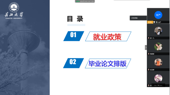 在就业政策讲解部分,张老师就引导学生如何获悉并充分发挥就业政策的作用,学习利用劳动法规保护自己,同时我们自己又应该遵守哪些规章制度来规避风险,以及熟悉学校、学院就业工作基本程序和相关规定等方面进行了介绍。讲解过程中,除了向同学们介绍在疫情环境下国家政府在扶持大学生就业创业方面的鼓励、优待政策以外,还向同学们推广了“西瓜视频 就业信息网”政策法规专栏,引导学生充分挖掘并利用资源了解国家各部委、各省市等制定的吸引人才、促进就业创业的政策。此外,会上还利用前期学生线上咨询的案例对学生在就业过程中遇到的具体问题进行分析和引导,避免学生在后面进入相同的误区。