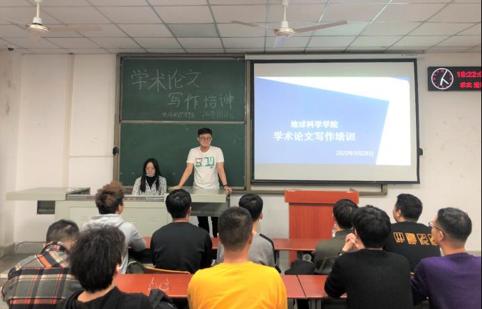 (通讯员 王一鸣)如何能在校学习期间发表SCI水平的论文?如何能够做到学术、学习和学生工作的三丰收?9月28日晚八点地科院在武教B-202举办了学术论文写作培训,揭开了学术论文写作的神秘面纱。本次培训由地科院研究生会学术部部长尹力主讲,地科院部分本科生、研究生参加。