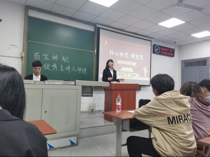 活动开始,每一位参加评选的同学激情四射,阐述着自己心中的建党精神,怀揣着对中华民族的敬畏,向观众深情地讲述爱国故事。