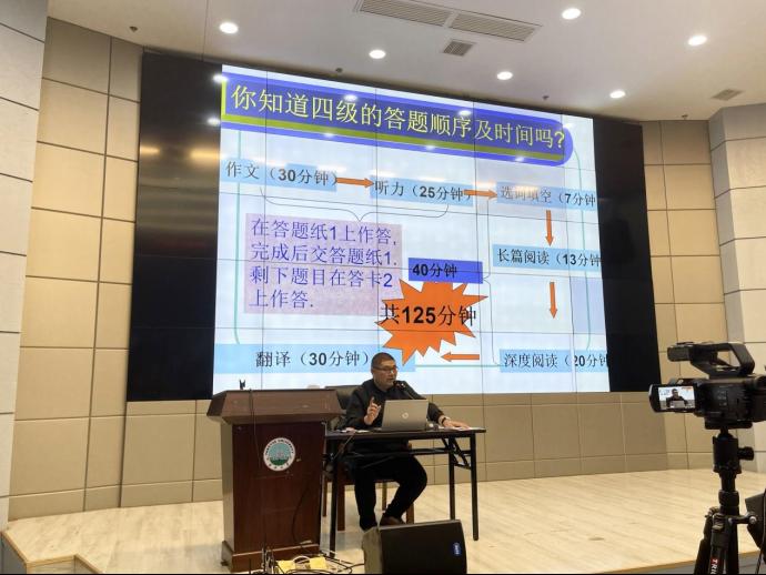 (通讯员 王佳颖)为助力学生顺利通过英语四级考试,西瓜视频 分别于4月14日、19日、27日晚6点半在石油科技大楼学术报告厅开展了“新文道”讲座,三次讲座分别从阅读、写作、听力三方面进行了技巧解析。