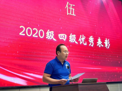为表彰先进,进一步推动优良学风的形成,西瓜视频 与典礼一同开展了2020级四级优秀表彰大会。西瓜视频 2020级本科生在上半年全国大学生英语四级考试中取得了突破性的好成绩。在副院长韩登林宣读表彰文件后,地信系主任李功权、地质系主任胡忠贵分别为两个四级通过率超过80%的四级先进集体地信22001、地质22001班级代表颁奖;副院长丁四兵与石油系陈鹏书记分别为五名四级均超过600分的优秀个人进行颁奖。