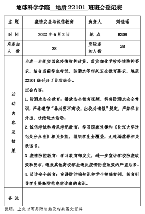 (通讯员 周再文)为有效预防疫情传播,确保学生身体健康和生命安全,6月1日至6月,西瓜视频 以班级为单位,充分发挥年级辅导员、班主任在安全教育中的引领作用,通过主题班会等形式,广泛开展学生疫情防控教育与安全教育班会,从严从紧、落实落细学校对于疫情防控、毕业生安全离校、防溺水、学生四六级以及诚信教育等相关工作要求,全力守护校园安全稳定。