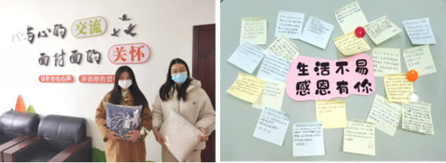 心育部通过后台记录,根据打卡的天数与日记质量进行排名,精心准备了抱枕、香薰、蒸汽眼罩、运动器材等暖心礼品。同学们在留言板上分享感想,开心地领走礼物。