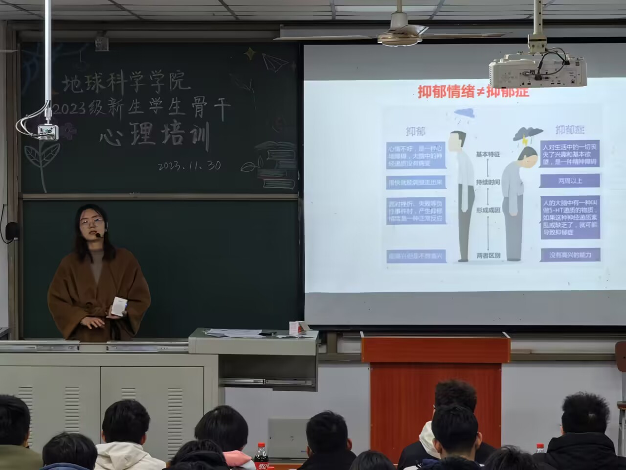 (通讯员:朱永康摄像:宁佳怡杜民意)11月30日14:00,西瓜视频 全体23级新生学生骨干齐聚于武教B108,学习“大学生常见心理问题与应对”,心理专干王红桥老师担任主讲。