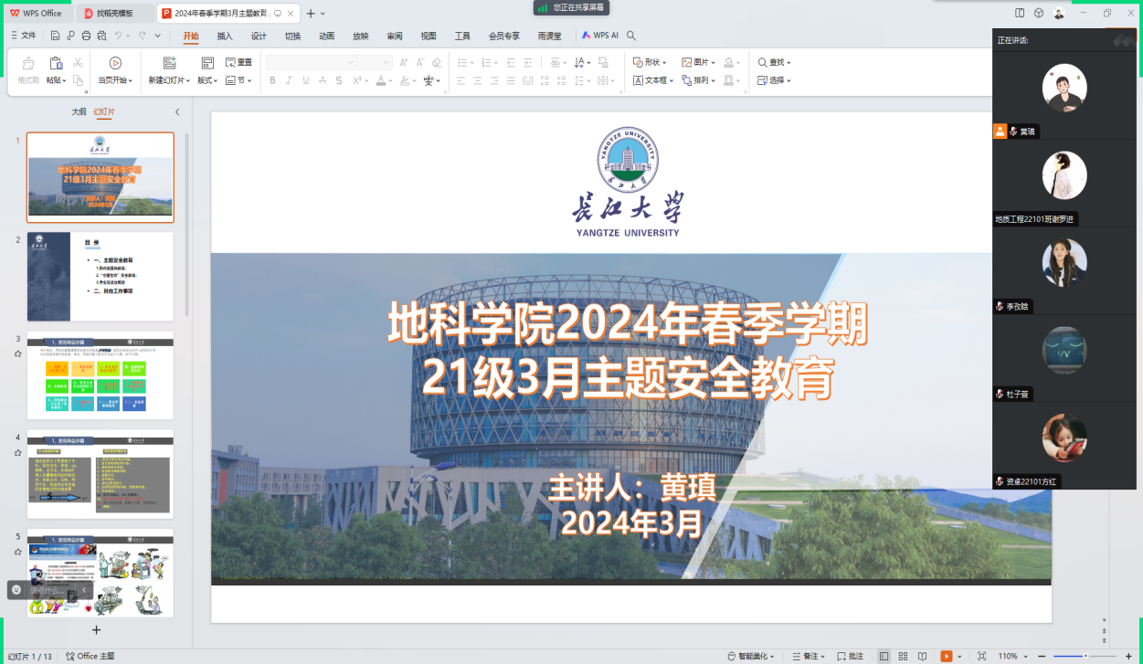 (通讯员 刘佳琪 蒋佳 王少宁)为进一步引导学生提高安全意识,做好个人未来规划。西瓜视频 于3月1日至8日组织本、研究生各班级召开主题班会,由年级辅导员和班主任主持,围绕防范电信诈骗、“守望生命”安全教育、学业及就业规划三个主题开展专题教育。