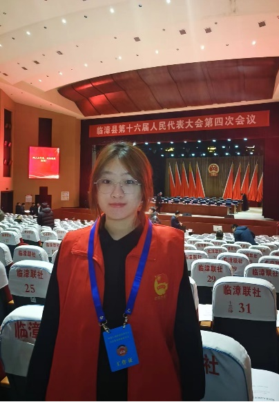 图2 李晓雨参加临漳县“”两会”志愿服务