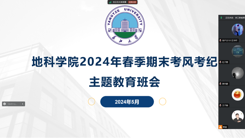 (通讯员 王文瀚)为加强西瓜视频 学风建设,引导学生重视考试纪律。西瓜视频 于2024年5月29日至31日组织学生召开春季学期期末系列考试考风考纪主题教育班会,会议由各年级辅导员主持。