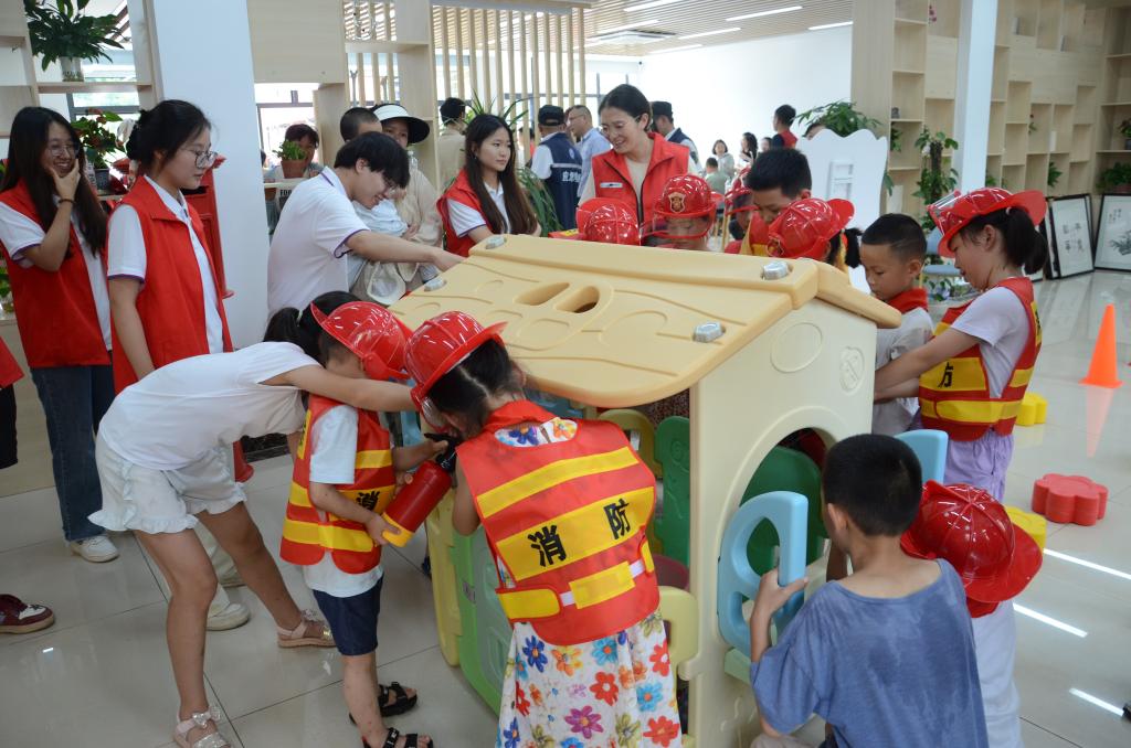 图5实践队志愿者帮助孩子们学习运用灭火器