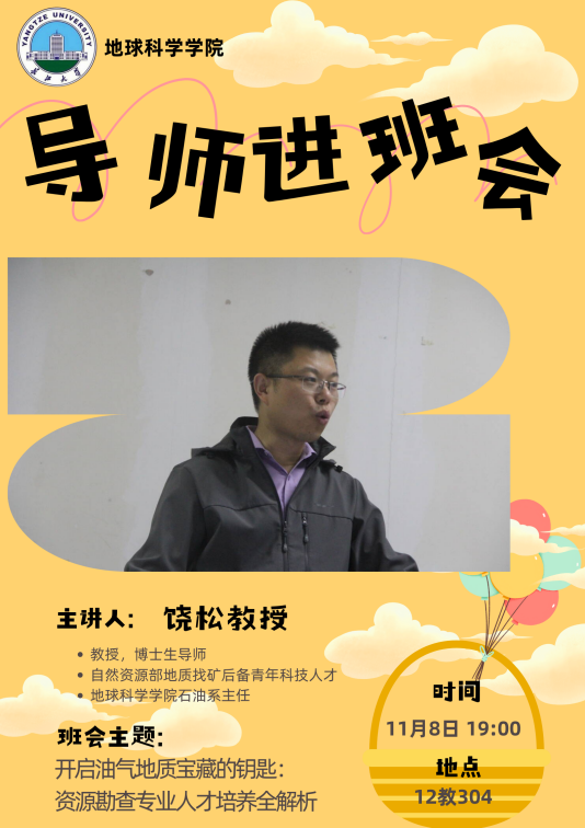 (通讯员 周文豪)为激发学生专业探索热情,助力学生知晓前沿资讯,促进西瓜视频 学术繁荣。11月8日晚,西瓜视频 石油系系主任饶松教授做客“导师进班会”系列活动,以“开启油气地质宝藏的钥匙”为主题在东校区12教304开展了精彩的主题班会,饶松教授、24级石油系全体本科生参会。
