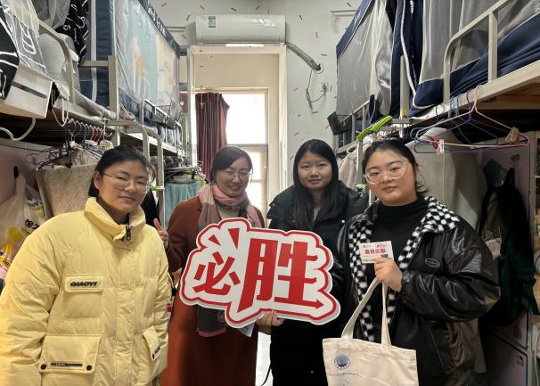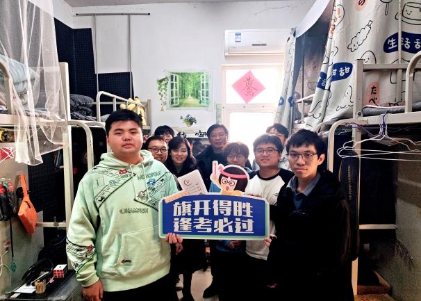 (通讯员 李雨泽 魏靖弢)随着2025年考研初试日期的临近,在紧张备考的冬日,西瓜视频 考研学子的复习热情却越发激昂。为鼓励和关心西瓜视频 考研学子,学院领导、21级班主任及学工办全体辅导员于12月17日中午走访2021级“备战”寝室,送去考前关怀,为同学们带来一份特别的温暖。