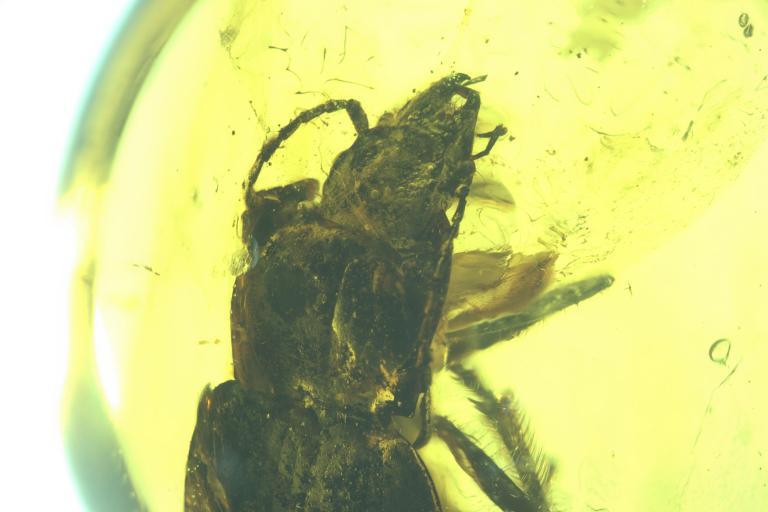 图3 刘美琪团队清理和观察的缅甸琥珀步甲科化石标本