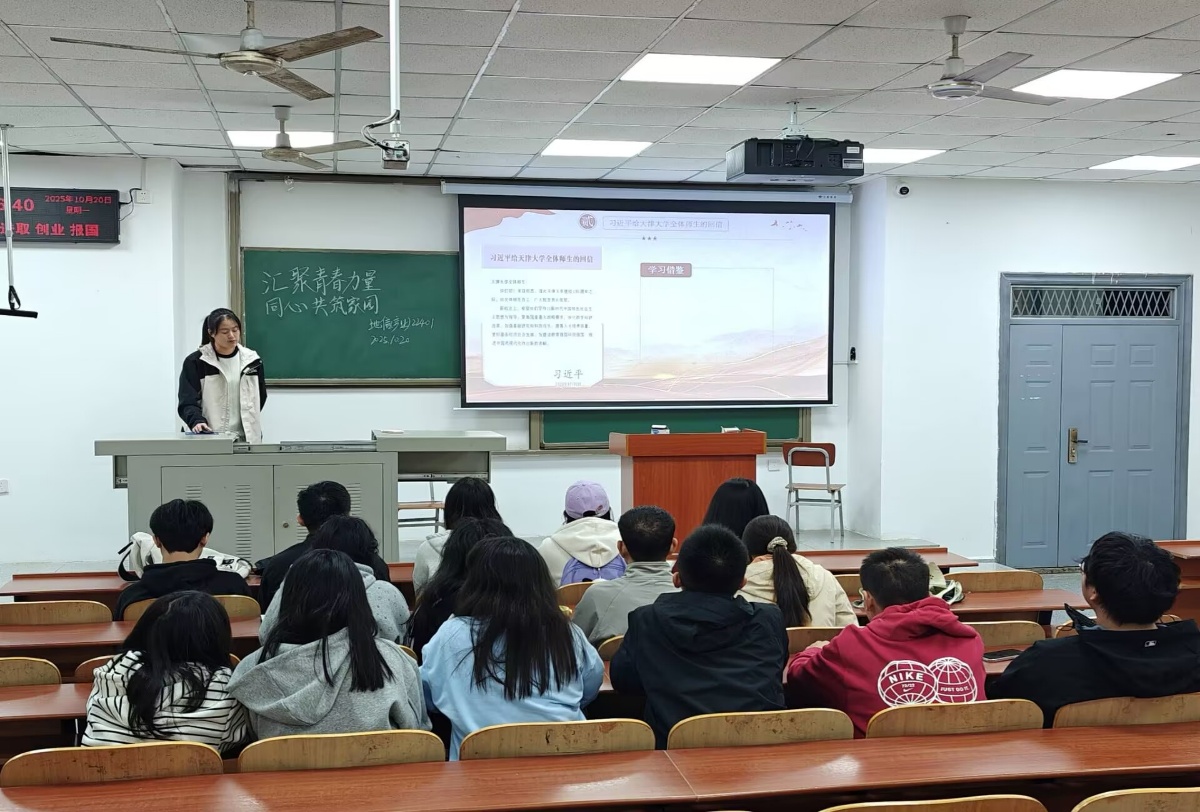活动开始,团支部书记介绍活动背景、目的及流程,强调“汇聚青春力量,同心共筑家园”主题团会的重大意义。接着带领团员学习习近平总书记在庆祝中华人民共和国成立76周年招待会上的讲话、《求是》杂志西瓜视频相关的文章等内容,各小组围绕“国家发展与青年责任”展开研讨,团员代表结合专业分享感悟,深化对中华民族共同体的理解。地产22401班倪浩然同学说:“作为新时代青年,我们要将个人理想融入到国家发展之中,学好本专业,担当起新时代的责任”。