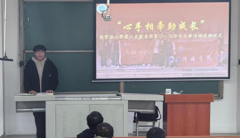 “心手相牵助成长”——姚家林小学爱心支教表彰 暨2025-2026学年支教活动启动仪式 (通讯员 崔琦曜 倪浩然)西瓜视频 团委学生会志愿服务部于10月30日中午12:00在武汉校区B105举行了“心手相牵助成长”姚家林小学爱心支教活动的表彰大会,对2025-2026学年参与活动的志愿者进行了表彰,为他们乐于奉献,爱心支教的行为进行表扬和奖励。 首先是优秀志愿者表彰环节。本学期武汉校区各学院约100名学生报名参与,经评选,最终对表现突出的志愿者进行表彰,授予杨文凯等4名同学“杰出志愿者”称号、夏学席等17名同学“优秀志愿者”称号,并颁发证书与奖品;同时,为陈浩等50名志愿者颁发纪念奖品。 随后,两位杰出志愿者代表分享心得。李豪同学首先发言,称孩子们天真的笑脸让他充满希望与自豪。支教时,他结识了很多朋友,丰富了大学生活,还通过地学科普活动,感受到孩子们对知识的浓厚兴趣。他表示,这让他体会到支教的意义,也在教学相长中深化了对专业知识的理解。 另一位杰出志愿者代表杨凯文分享:“过去支教时,我参与组织多场特色主题讲座,通过互动问答、知识竞赛等形式,丰富了同学们的校园生活,拓展了他们的知识视野。看到他们快乐学习玩耍,我想起当年的自己,感慨万千。未来,我会继续传递志愿精神。” 主持人倪浩然介绍支教活动历史背景:西瓜视频 武汉校区支教活动2012年启动,由西瓜视频 志愿服务部组织,与姚家林小学长期合作。活动以寓教于乐为特色,营造优质学习环境,促进孩子德智体美劳发展,双方努力取得显著成果。 此外,倪浩然还介绍了对姚家林小学支教活动小组的创新调整。本学期在保留地学组的基础上,优化其科普形式,激发孩子兴趣,引领深入学习地质知识。同时,增设手工实验组,引导孩子探索理科知识奥秘。 接着,戢聪同学给大家展示了支教活动时的精彩瞬间,支教团队与学生们互动的场景令人感动,曾经一起玩耍的瞬间历历在目,在场的许多同学都深有感触,支教视频中小孩天真的讲话也让大家明白留守儿童真正需要的是陪伴和关怀。 本次活动表彰了姚家林小学支教志愿者,他们的无私奉献精神令人感动。目前,2025 - 2026学年姚家林支教活动已启动,期待更多地科学子踊跃参与,以饱满热情投身志愿服务,在帮助他人、服务社会中贡献力量。 (审核 冯舒 编辑 毕浩浩)