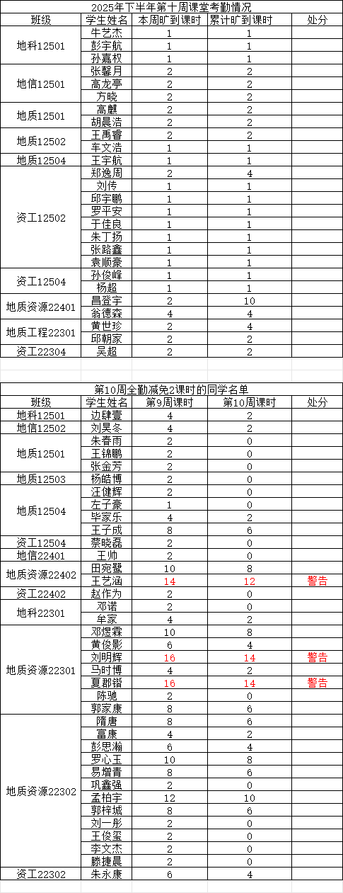 持续开展常态化课堂考勤工作。现将第十周考勤情况通报如下: