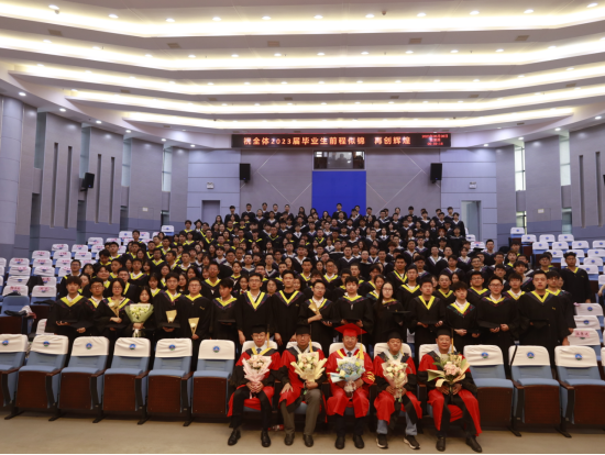 院长胡明毅教授、导师代表肖传桃教授、胡忠贵教授、饶松教授、李功权副教授、李少华教授、林小云教授、韩登林教授、郭康良教授、全体辅导员及2023届毕业生参与仪式。