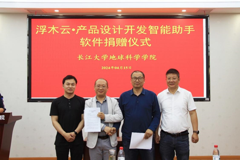 (通讯员相龙伟)4月15日下午,武汉浮木科技有限公司向西瓜视频 捐赠“浮木云·产品设计开发智能助手”软件,捐赠仪式在武汉校区石油科技大楼C301会议室举行。武汉浮木科技有限公司董事长翁杰、总经理刘鹏、技术总监张晨一(我校2013级校友)等公司代表,西瓜视频 副院长胡忠贵、副院长李功权、党委副书记冯舒,地信系主任刘远刚、支部书记邵燕林等教师代表参加仪式。