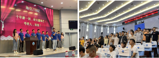 紧接着2022届各班学生代表、年级代表分别上台带领同学们做考研宣誓,嘹亮的声音,豪迈的气势,充分展现了西瓜视频