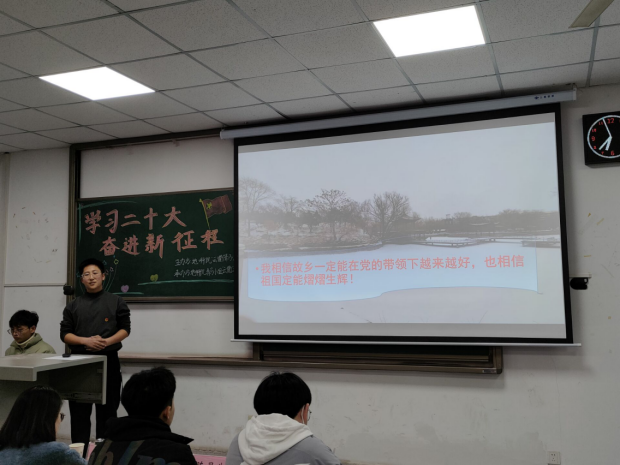 小组成员们在汇报中向我们展示了中国共产党员的为民情怀和高尚品质。史嘉欣向我们讲述了他百年母校宣化一中的红色党史,李畅则展示了她家乡天津文化的丰富多元;易伟杰将他在寒假走访天门红色教育基地的研学情况与我们一同分享;来自张家口的史晓岩同学将故乡英雄儿女的故事向我们娓娓道来;孙梦琪从党在疫情中的建设性作用引入进而传递了淄博老党员焦裕禄的宝贵精神;党雪彤以小见大,从山海情的电视剧入手,呈现了一幅新中国发展的历史画卷;邹璐璐从身边故事出发,采访了两位九旬老党员并记录了他们党史讲述的心路历程;肖艳慧在描述红岩精神时,情到深处不禁热泪盈眶。汇报完毕后郭霖老师向我们寄予殷切的厚望,希望我们学好自身专业知识,将能源饭碗牢牢端在自己手中。