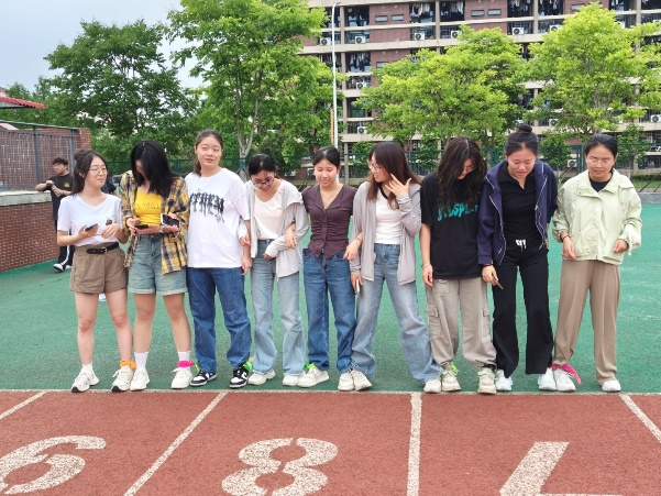 活动当天,操场上气氛热烈。在“九人十足”项目中,成员两两绑腿,喊着口号并肩前进;即便节奏错乱,也相互鼓励、积极调整。跳大绳时,摇绳与跳绳成员配合默契,大家在快速跃动中挑战自我。这些项目既考验了成员间的协调配合能力,又展现了互帮互助的团队精神和勇于拼搏的青春风采。