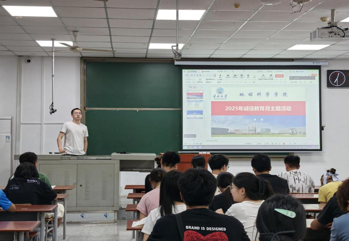 2025年“诚以立身 信以致远”诚信教育主题活动在武教A-108以线上线下融合方式开展,现场邀请四位学生代表主讲,辅导员黄瑱老师主持,300余名学生参与活动。