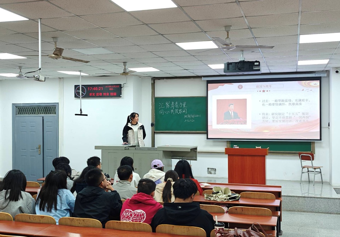 活动开始,团支部书记介绍活动背景、目的及流程,强调“汇聚青春力量,同心共筑家园”主题团会的重大意义。接着带领团员学习习近平总书记在庆祝中华人民共和国成立76周年招待会上的讲话、《求是》杂志西瓜视频相关的文章等内容,各小组围绕“国家发展与青年责任”展开研讨,团员代表结合专业分享感悟,深化对中华民族共同体的理解。地产22401班倪浩然同学说:“作为新时代青年,我们要将个人理想融入到国家发展之中,学好本专业,担当起新时代的责任”。