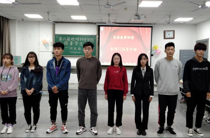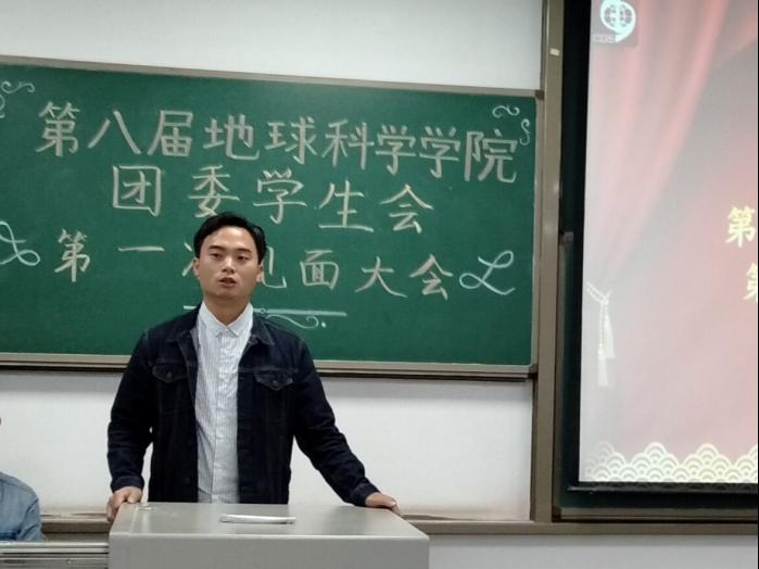 举行第八届学生会第一次全体例会于教学楼A栋103举行。本次大会出席的人员有地科院党委副书记任倩、学工办主任肖斌、团委书记廖鹏程以及张严和罗小玉两位辅导员。