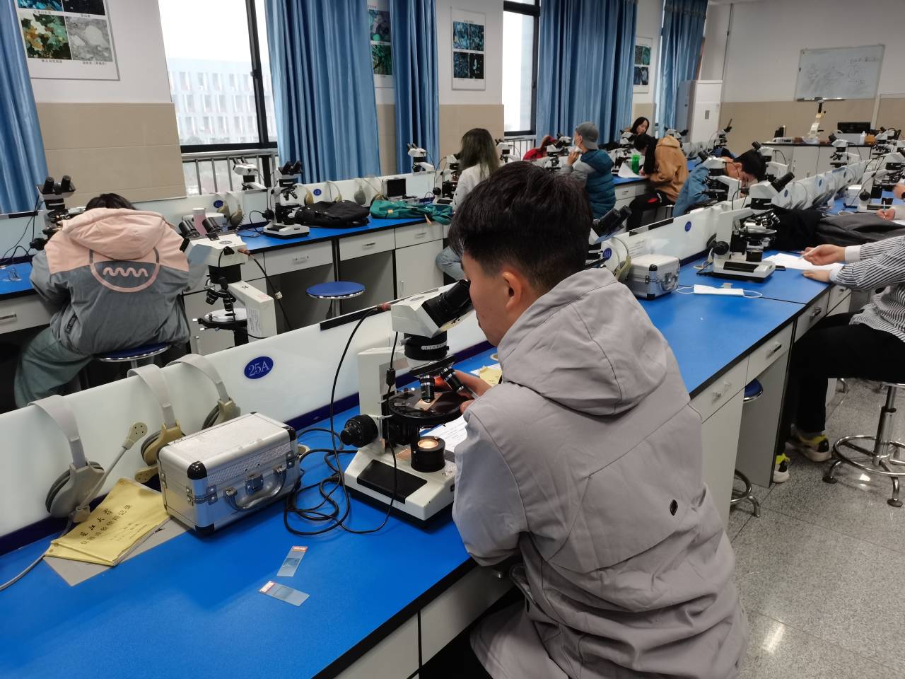 11月21日,比赛分别在实验楼A-314和A-317进行,比赛分上午和下午两轮,分别进行三大岩类手标本鉴定和岩石薄片鉴定。两轮比赛要求大家运用自己的所学的理论知识,通过鉴定,在规定的时间内完成答卷,这将对大家基础知识的掌握是否牢固、综合实践能力以及临场发挥能力都是一次考验。