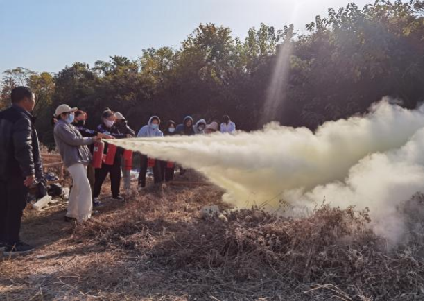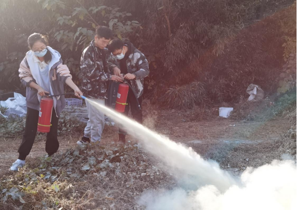 最后,同学们在老师的带领下,依照所学相关内容,分组进行消防灭火实操演练。