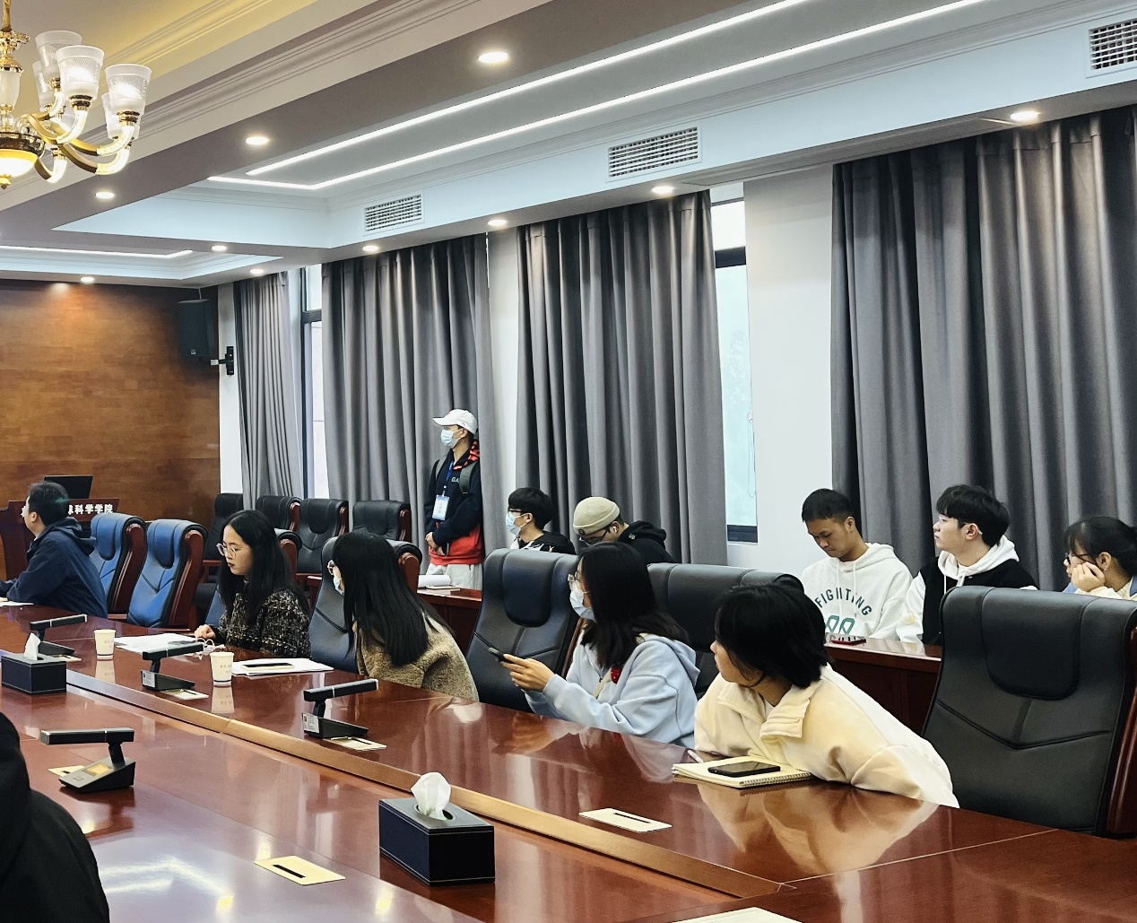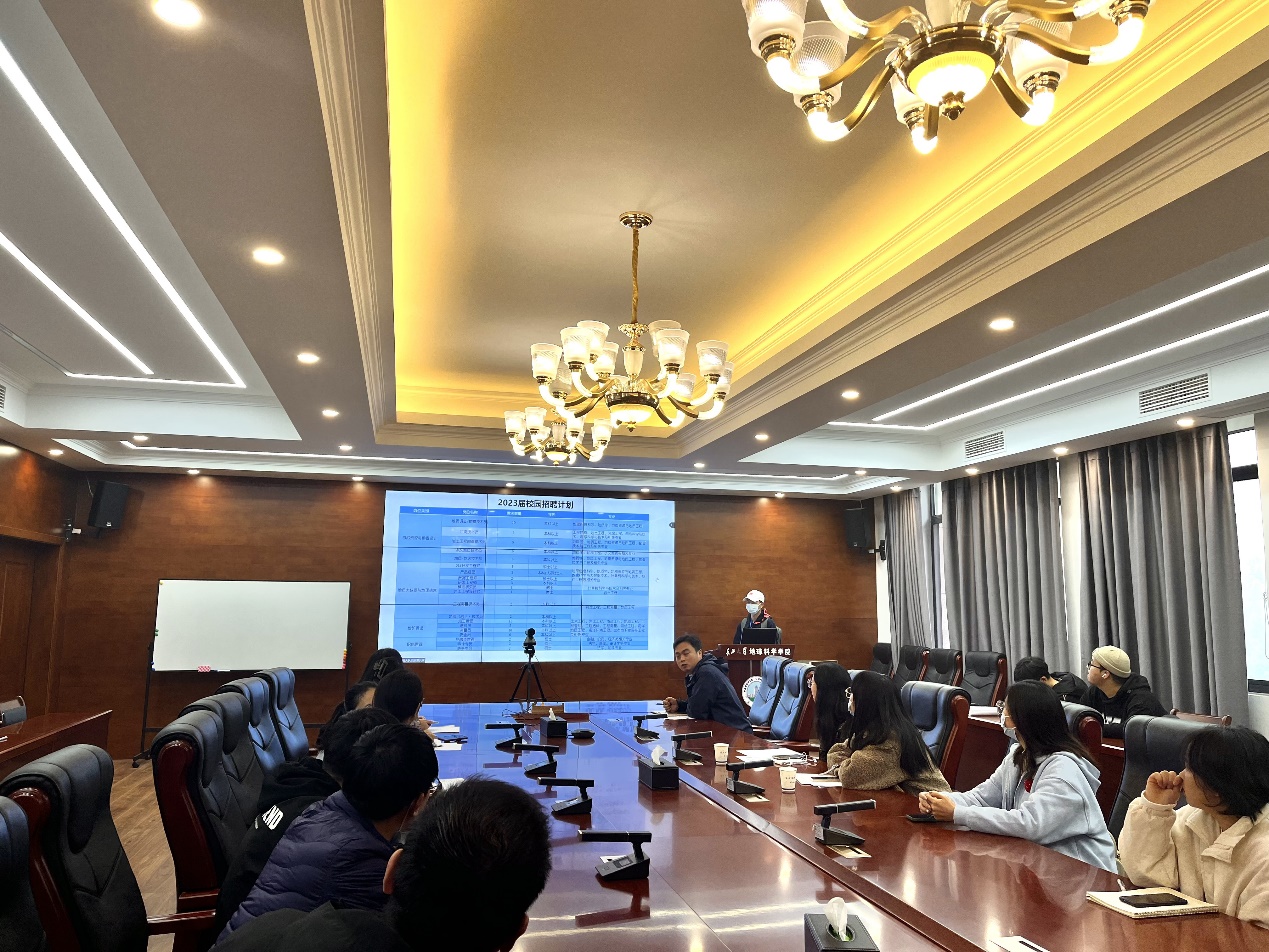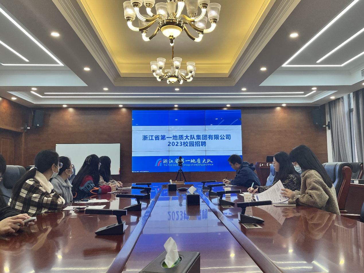 连线进行线上“云招聘”。宣讲会由浙江省第一地质大队程雨佳和王子良主讲。辅导员张严老师以及20级研究生在石油科技大楼C201会议室参加此次招聘宣讲,部分同学线上参与。