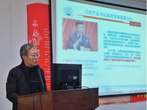 C201会议室给全体党员教师作了题为“我国能源安全形势”的精彩党课。