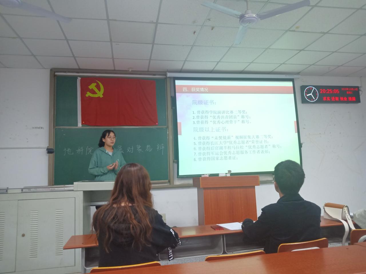 本次大会分为三项。会议第一项,全体人员起立,奏唱国歌。会议第二项,全体党员重温入党誓词。第三项为正式答辩,每位参加答辩的同学就个人思想品德、学干经历、学习成绩、获奖情况等方面进行了全面展示。整个答辩过程,同学们既展示了自己的风采与成绩,也真诚的表达了对党的向往和希望早日加入党的殷切期望。与此同时,答辩也为同学们提供了相互学习的机会,大家在答辩中认识到了自己不足与差距,进一步明确了努力方向与目标,更加坚定了继续向党组织靠拢的决心与信心。