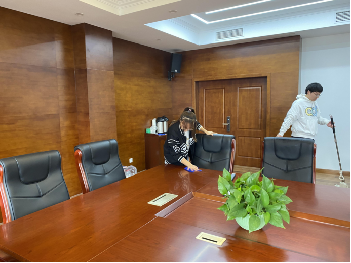 (通讯员 吉霞)建党百年之际,根据学校及学院“学党史、悟思想、办实事、开新局”系列活动安排,西瓜视频 学生党支部积极响应各级党委党史学习号召,组织学生党员和入党积极分子开展了系列志愿活动。从今天春季学期开学至今,每周五安排四名党员志愿者打扫学院会议室就是系列活动之一,旨在让学生们在劳动中体会党史精神价值。