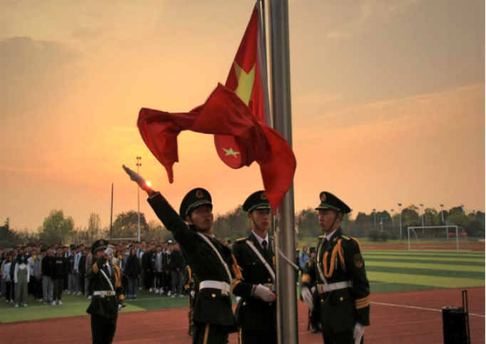 观国旗飘扬,悟爱国思想。学院举行的每一次升旗仪式,学生党员和积极分子都怀着饱满的热情,提前15分钟来到操场,排好队列,等待升旗仪式的开始。在嘹亮的国歌中,五星红旗冉冉升起,迎风飘扬。在场的每个人都深怀着对祖国无限的热爱和崇高的敬意,向国旗行注目礼。升旗仪式激发了同学们的爱国豪情,让他们的责任感和使命感更加明确。
