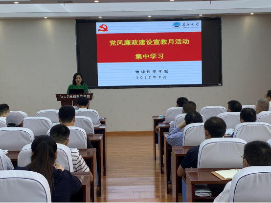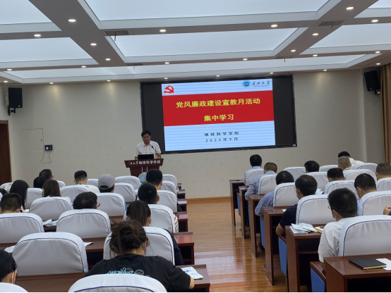 (通讯员潘志远)为弘扬清廉守正担当实干之风,赋能高质高效清廉地科建设,推进党风廉政宣传月活动深入开展,9月1日下午,西瓜视频 全体教职工在石油科技大楼C301会议室进行党风廉政建设宣教月活动集中学习,会议由党委书记杨全辉主持。