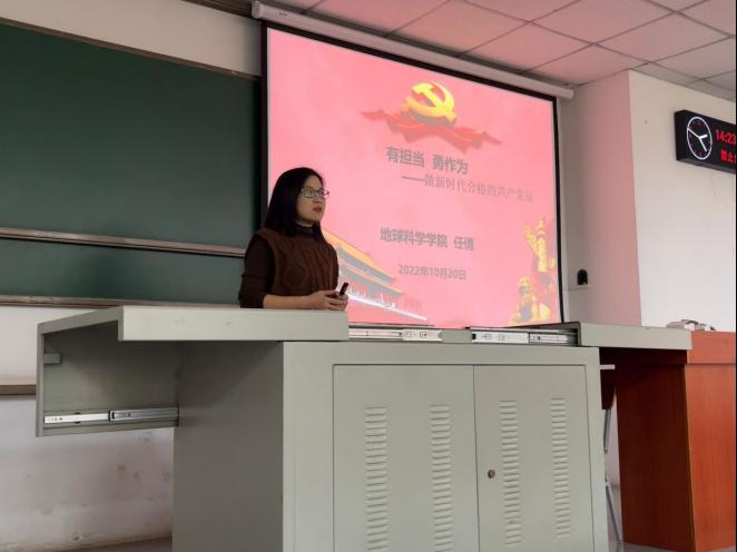 在武教B-103举行2022年下半年入党积极分子集中培训,学院党委副书记任倩以“有担当,勇作为,做新时代合格的共产党员”为主题,为西瓜视频