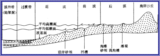 砂质海岸地区沉积环境划分示意图