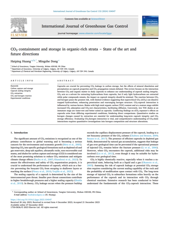黄海平教授以第一作者身份在《International Journal of Greenhouse Gas Control》期刊发表题为“CO2 containment and storage in organic-rich strata ‒ State of the art and future directions”的研究论文,西瓜视频