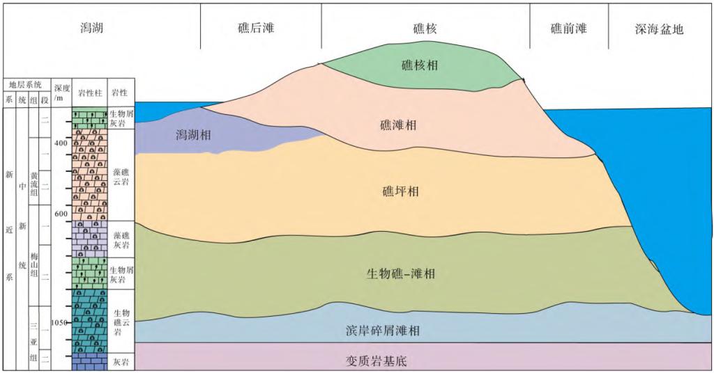 图1 “西科1 井”新近系藻礁成因综合模式图