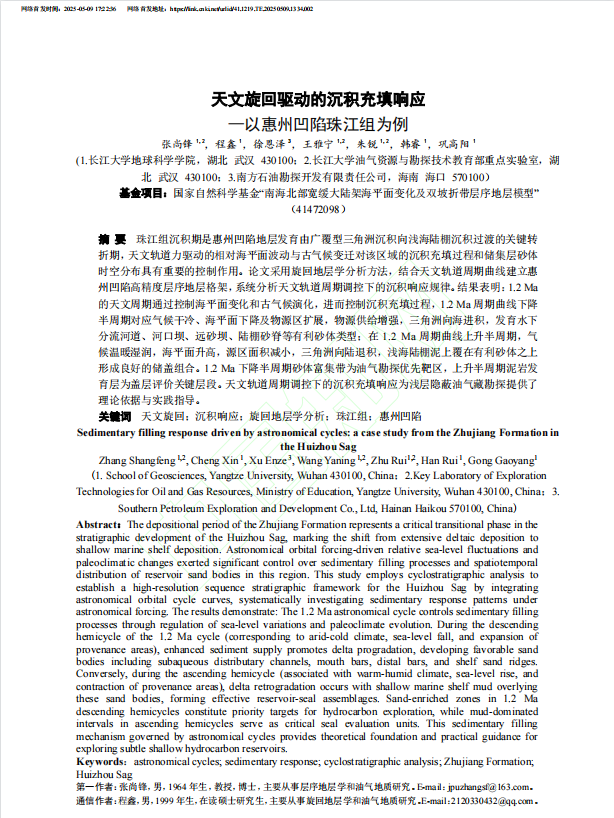 张尚锋教授在《断块油气田》上发表题为“天文旋回驱动的沉积充填响应—以惠州凹陷珠江组为例”的研究论文。西瓜视频