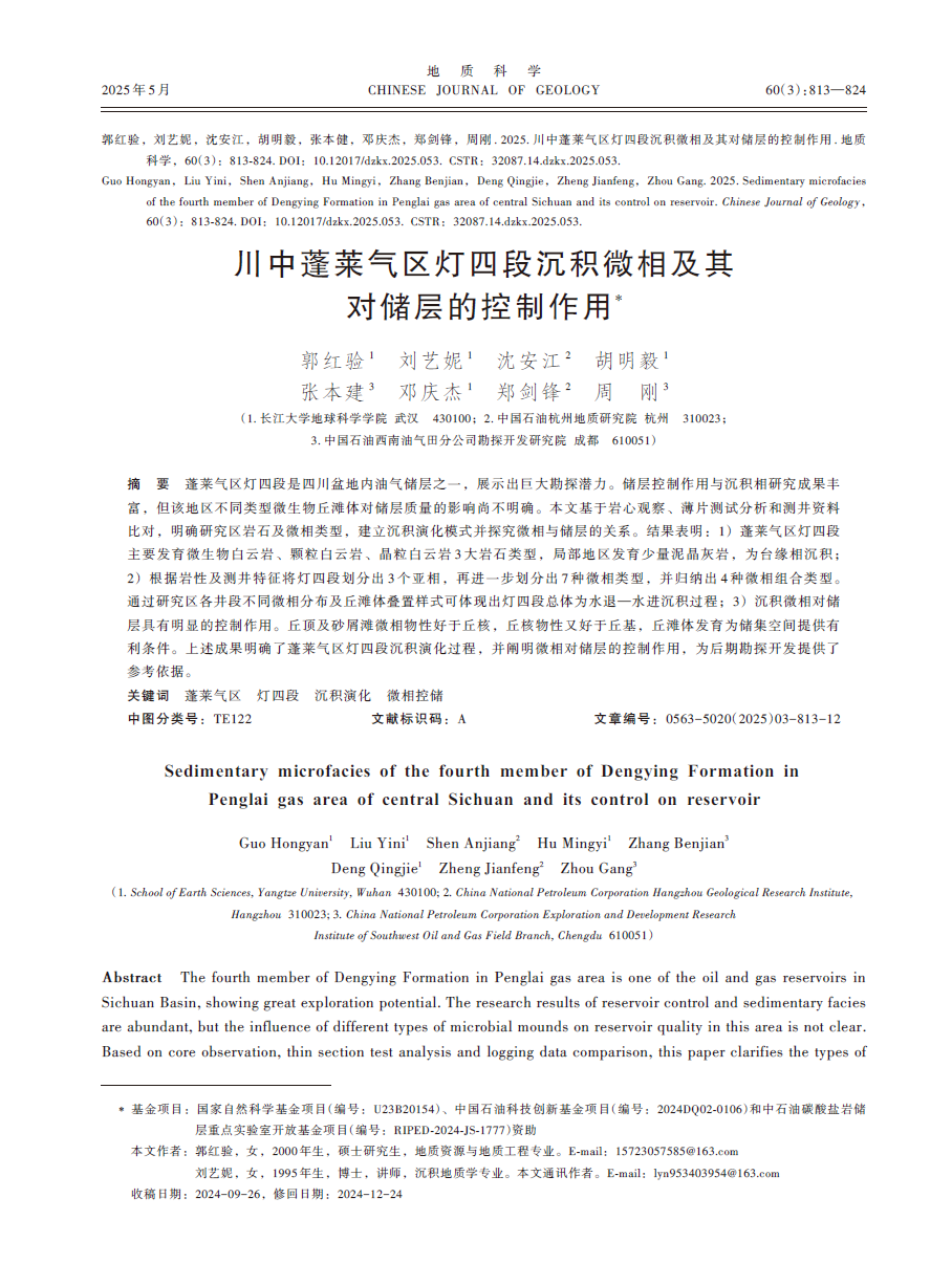 硕士生郭红验在期刊《地质科学》上发表了题为“川中蓬莱气区灯四段沉积微相及其对储层的控制作用”的研究论文。西瓜视频