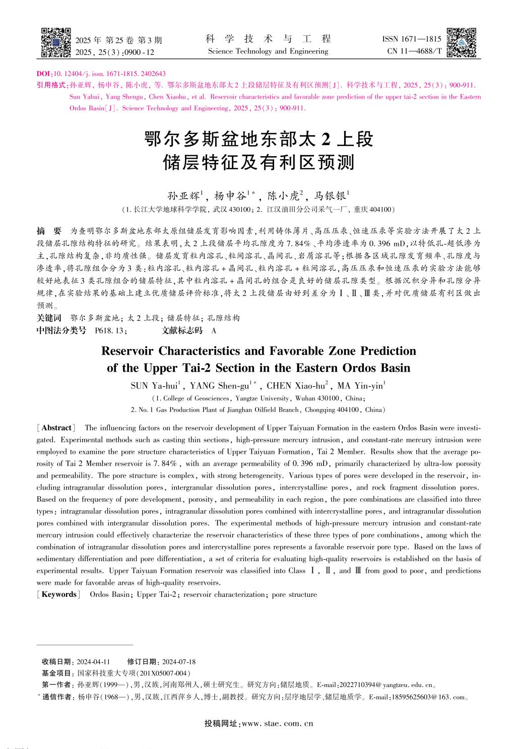 为论文第一署名单位,杨申谷副教授为第一通讯作者,论文由国家科技重大专项《大型油气田及煤层气开发》基金项目资助。