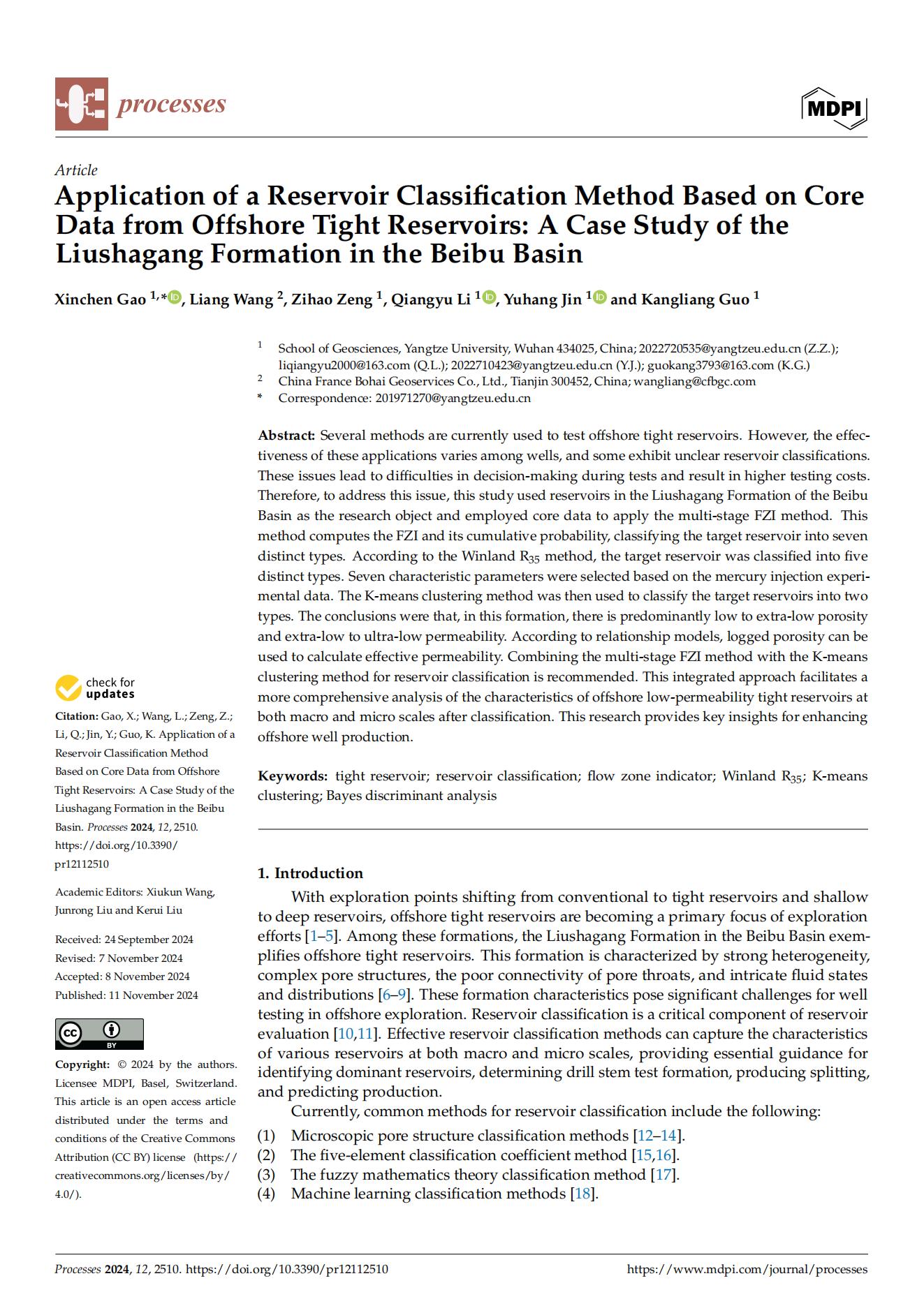 22级博士研究生在期刊《Processes》上发表题为“Application of a Reservoir Classification Method Based on CoreData from Offshore Tight Reservoirs: A Case Study of theLiushagang Formation in the Beibu Basin”的研究论文。西瓜视频
