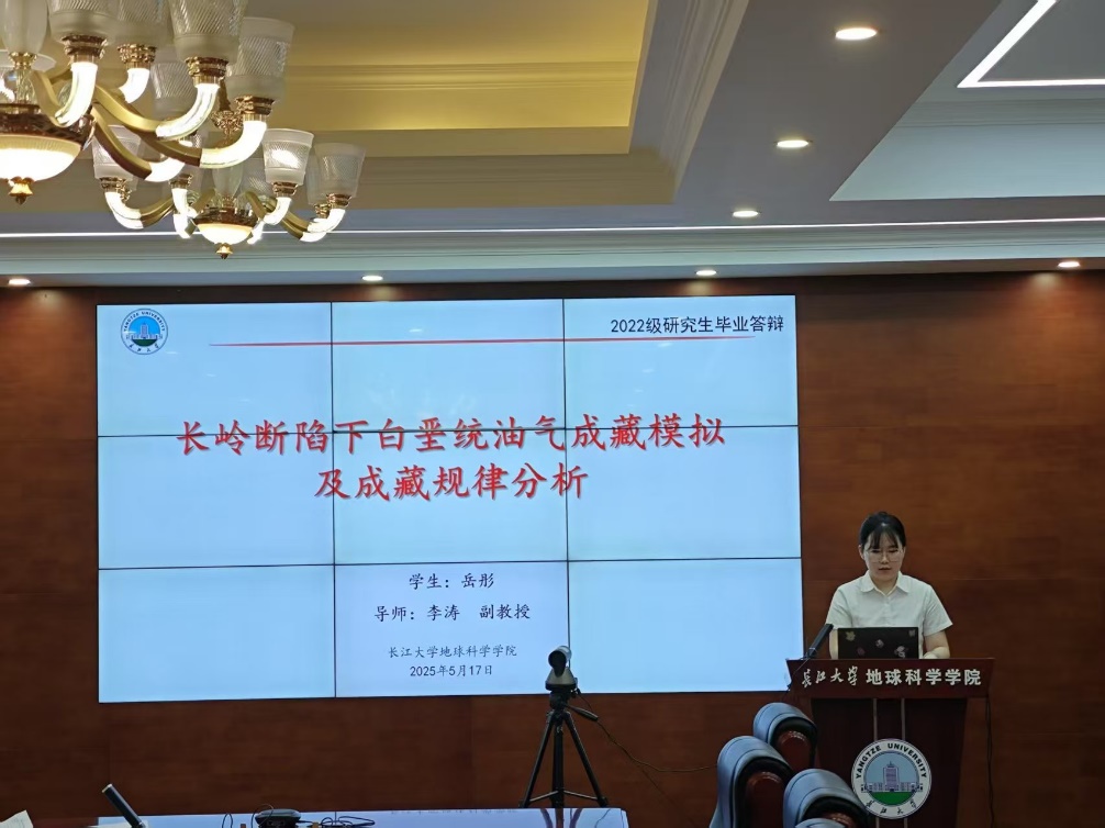 (通讯员 岳彤)2025年5月17日上午,西瓜视频 硕士生研究生岳彤的学位论文答辩在石油科技大楼C201会议室举行。答辩委员会由校内外专家组成,西瓜视频 胡忠贵教授担任主席,中石油勘探开发研究院高级工程师谢武仁、中石油勘探开发研究院高级工程师武赛军、中石化江汉采油厂高级工程师昌俊杰、西瓜视频 陈轩教授担任委员,胡九珍老师任答辩秘书。