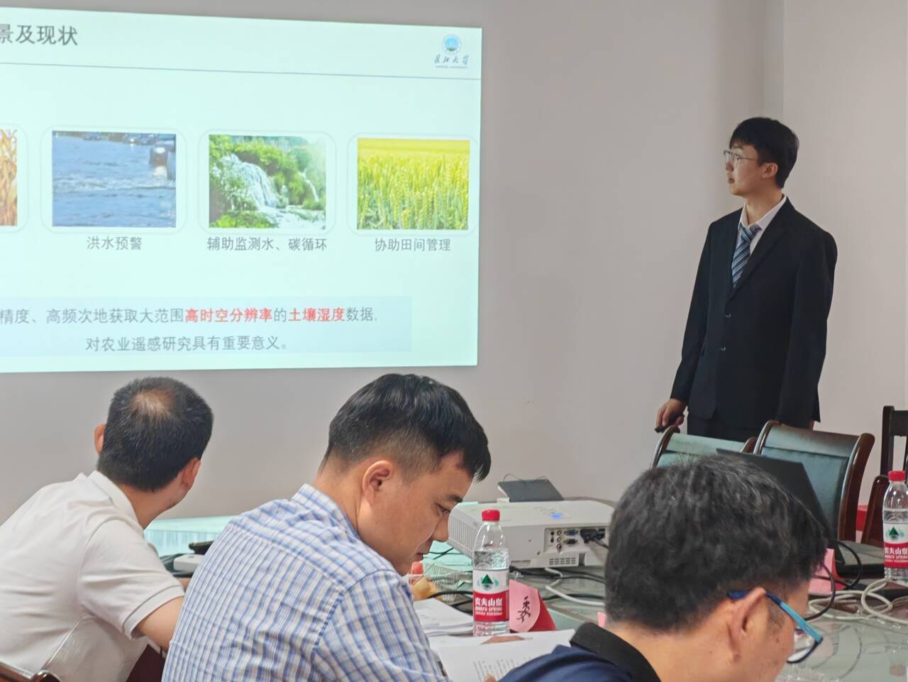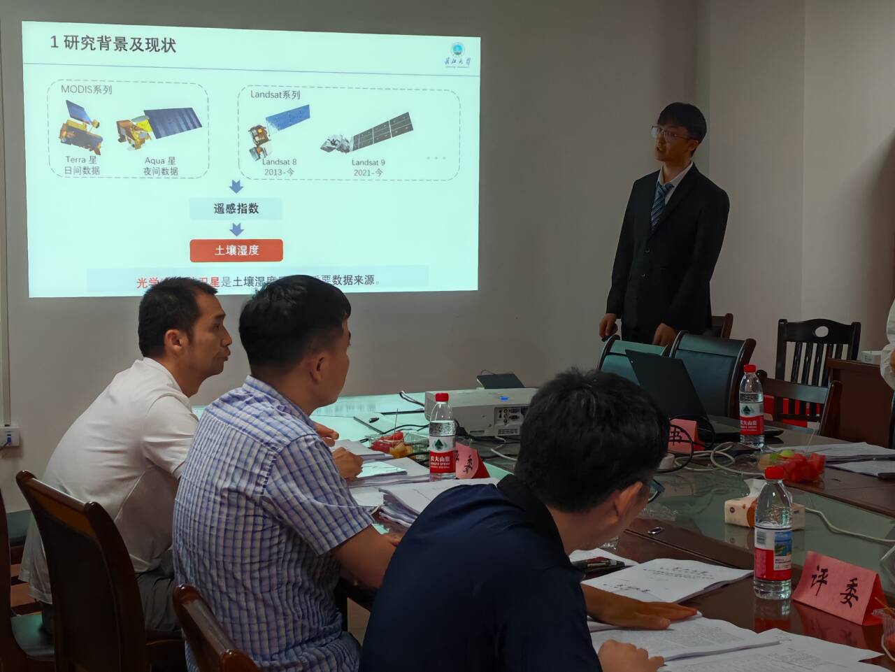 谢泓的学位论文题为《基于多源卫星数据融合的土壤湿度空间降尺度方法研究》,在导师王庆副教授与校外导师武汉大学张晓东教授的指导下,针对土壤湿度空间降尺度中的关键问题展开研究。论文以湖南省UTM-MGRS格网49REL为研究对象,综合机器学习与物理模型的优势,建立了多阶段协同的空间降尺度框架,系统分析了微波、光学、热红外等多源遥感卫星数据在土壤湿度反演研究的潜力,为快速稳健地生产高时空分辨率的土壤湿度产品提供了重要理论依据。