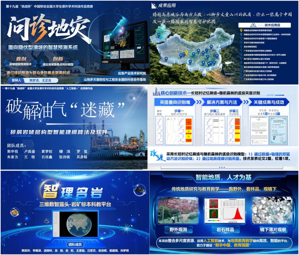 学院充分发挥地学学科优势,推动“学科优势”与“赛道需求”双向奔赴。主体赛项目“问诊地灾”直面隐伏型滑坡预测难题,服务“一带一路”国家地质灾害预警;“人工智能+”项目紧密结合油气勘探与地质教学,实现环境保护、科普教育与科研创新的有机融合。在“揭榜挂帅”赛道中,团队精准对接企业需求,将理论知识转化为解决国家能源痛点的实战方案,彰显地学学子的使命担当。